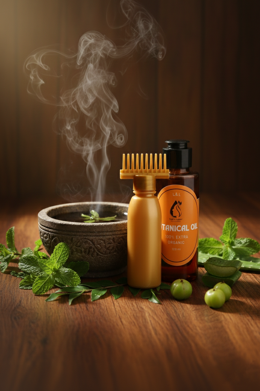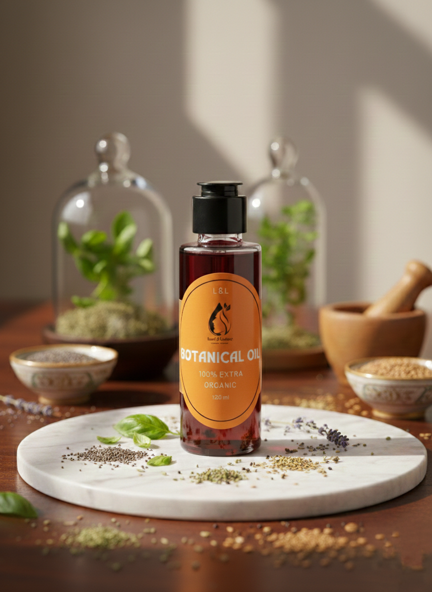 Botanical Hair Oil — Strengthen roots, revive natural shine.